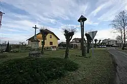 - Kreuz mit Steinsockel auf dem Dorfplatz