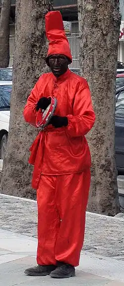 Das Alter der Tradition ist unklar. Spekulationen reichen von einem kultischen Ursprung in Mesopotamien bis zu einer wesentlich jüngeren Verbindung mit schwarzafrikanischen Sklaven, die als Unterhaltungskünstler auftraten. In den traditionellen Liedern stellt er sich als Leibeigener vor, der versucht, andere Menschen zu erheitern, die er als seine Herren anspricht. Wegen seiner schwarzen Hautfarbe ist die Figur – falls letztgenannte Herkunft vorausgesetzt wird – wegen möglichem Rassismus umstritten.[3] Daher wird heute manchmal das Gesicht nur zur Hälfte geschwärzt.