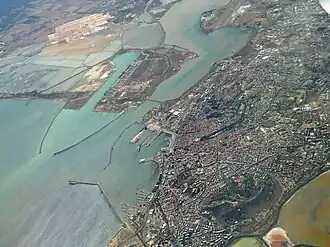 Der künstliche Kanalhafen mit dem Containerterminal befindet sich südwestlich des alten Hafens, von diesem nur getrennt durch den Kanal zur Lagune von Santa Gilla (⊙). Cagliari liegt nur wenige Seemeilen von der bedeutenden Schifffahrtsroute Gibraltar–Sues entfernt, weswegen das von Eurogate und Contship Italia betriebene Containerterminal in erster Linie als Transshipment-Hub genutzt wird. Das Hafenbecken ist etwa 16 Meter tief, die Uferlänge der Kaianlagen beträgt etwa 1600 Meter, die Kapazität liegt bei etwa 1,3 Millionen TEUs, die Auslastung betrug 2016 etwas mehr als 50 Prozent. Im Jahr 2017 ging der Umschlag deutlich zurück.[4] Es gibt Planungen, den Kanalhafen um- und auszubauen und die im alten Hafen verbliebenen industriellen Aktivitäten und kleinere Werften in diesen neuen Bereich zu verlagern. Beim Kanalhafen befindet sich ein Stützpunkt der Guardia di Finanza.