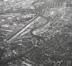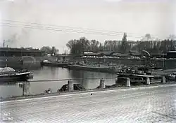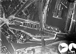 Seit 1916 hatte der Südwestdeutsche Kanalverein unter Führung des Heilbronners Peter Bruckmann Pläne für eine Kanalisierung des Neckars im Rahmen einer Kanalverbindung zwischen Rhein und Donau erarbeitet. Mit Inkrafttreten der Weimarer Verfassung am 11. August 1919 wurde der Neckar eine Reichswasserstraße, und die Weimarer Nationalversammlung beschloss am 27. April 1920 seinen Ausbau von Mannheim bis Plochingen. Heilbronn plante neue, an den zukünftigen Kanal angepasste Häfen. Als Notstandsarbeit wurde 1922/23 der Industriehafen Ost angelegt,[8] der heutige Osthafen nahe der Stadtgrenze zu Neckarsulm, der 1956 verlängert und 1967 um einen Schwergutumschlagplatz erweitert wurde.[9] Ein geplantes paralleles Hafenbecken westlich davon wurde ebenso wenig verwirklicht wie ein nördlicher Unterer Hafen im Neckarbett bei der Bleichinsel und ein südlicher Oberer Hafen zwischen Wertwiesen und Knorrstraße. Der Kanalplaner Otto Konz schlug 1927 vor, stattdessen den neu zu erbauenden Neckarkanal zwischen Heilbronn und Böckingen selbst als Hafen zu benutzen. So wurde von 1931 bis 1935 der neue Kanalhafen errichtet, der nach seiner Eröffnung am 28. Juli 1935 bis auf den Salz- und Osthafen nach und nach alle früheren Häfen ersetzte. Der Karlshafen war schon 1931 im Zuge des Kanalbaus teilweise zugeschüttet worden,[10] der Floßhafen wurde im Zeitraum 1931 bis 1934 zugeschüttet,[11] die Zuschüttung des Winterhafens folgte 1951.[12] Die Zuschüttung des Wilhelmskanals konnte abgewendet werden,[13] er steht seit 1957 unter Denkmalschutz.[14] Bis zur Inbetriebnahme des Stuttgarter Hafens 1958 im Zuge der Fortsetzung der Neckarkanalisierung nach dem Zweiten Weltkrieg blieb der Heilbronner Hafen der am weitesten flussaufwärts gelegene, mit modernen Schiffen erreichbare Neckarhafen.