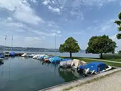 Der Hafen liegt am westlichen Dorfeingang von Männedorf, gegenüber der Seestrasse unterhalb der Kläranlage Weiern. Der Hafen bildet mit der daneben liegenden Villa Alma, der Landzunge im Westen, der Mole und den Stegen eine der schönsten Grünanlagen in Männedorf.