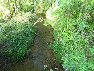 Mündung des Haferbachs (links) in die Helme (rechts)