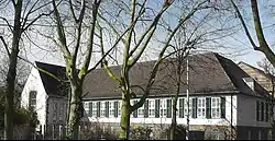 Am Hagelkreuz, Ecke Klotzstraße/Schulstraße errichtete 1938 der Architekt Helmut Hentrich das Jugendheim für die Hitlerjugend. Das Haus der Jugend wurde am 20. April 1939 in der Schulstraße 44 eingeweiht.[36] Die Jugendherberge des Deutschen Jugendherbergswerks (DJH), die in dem Gebäude anschließend Übernachtungen für wandernde Jugendliche anbot, musste Mitte der 1950er Jahre ihren Betrieb einstellen. Zwei Jahre lang dienten die Räume Flüchtlingen als Unterkunft. Erst im Juli 1956 konnte das DJH das Haus nach den nötigen Instandsetzungsarbeiten wieder für Jugendliche öffnen. Bis Anfang Dezember 1956 wurden 880 Übernachtungen verzeichnet. Im Oktober 1958 übernahm die Stadt Hilden das Gebäude als Jugendheim.[50][51] Heute werden im ehemaligen Jugendheim 50 Kinder von 3 bis 6 Jahren in der Städtischen Kindertageseinrichtung „Mäusenest“ betreut.[52]