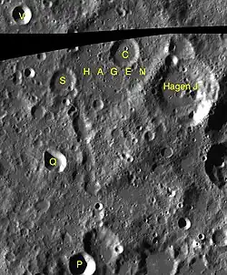 Hagen ist der Name eines stark erodierten Kraters auf der Rückseite des Mondes.