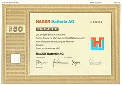 - ↑ Horst Köhler: Gründung und Entwicklung der HAGEN Batterie AG. In: HAGEN Batterie AG (Hrsg.): 75 Jahre HAGEN Batterie AG. HAGEN kontakt REDAKTION, Münster 1985, S. 9–18.