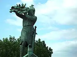 Kriemhild heiratet den Hunnenkönig Etzel und lockt ihre Verwandten an ihren Hof, um an Hagen Rache zu nehmen. Hagen warnt vergebens, und als er am hunnischen Hof des Verrats gewahr wird, erschlägt er sofort Kriemhilds (und Etzels) Sohn Ortlieb, der auch der Erbe der Ansprüche auf den burgundischen Thron wäre.[2] Am Ende des Nibelungenliedes stirbt Hagen nach der Schlacht an Etzels Hof zwischen Hunnen und Burgunden als letzter der Helden im Kerker durch Kriemhild, die ihn mit Siegfrieds Schwert enthauptet.