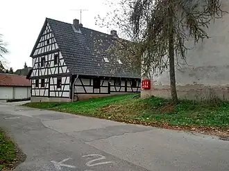 - Haus Nr. 3: eingeschossiges Wohnstallhaus, Fachwerk mit K-Streben; im Wohnteil das untere der drei Dachgeschosse nachträglich ausgebaut; der nordöstliche Eckständer bezeichnet „A. R. H./1740“[10]