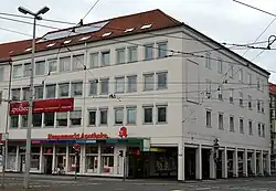 (1944: Kriegszerstörung der Apotheke; 1951: Wiederbeginn im Neubau)