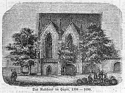 Von 1689 bis 1690 ließ Herzog Anton Ulrich das von der Stadt ungenutzte Rathaus und das angrenzende Gewandhaus durch Johann Balthasar Lauterbach zum Opernhaus umbauen. Nach diesem Umbau blieb nur die Nordseite des Rathauses unverändert. Dieser Giebel besaß gotische Fenster und es war eine Figur der heiligen Katharina, der Schutzpatronin des Hagens, angebracht. Der restliche Teil der Fassade verschwand hinter Holzanbauten. Am 1. September 1861 fand mit Mozarts Stück „Die Zauberflöte“ die Schlussvorstellung im Opernhaus statt. Drei Jahre später wurde das Bauwerk und somit das darin verbaute Rathaus und Gewandhaus abgerissen. Mit dem Abriss des Opernhauses entstand der vergrößerte Hagenmarkt, wie er heute anzutreffen ist, und eine direkte Verbindung vom Bohlweg zur Wendenstraße.