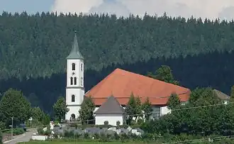Die ab 1654 erbaute Wolfgangkapelle wurde 1859/60 durch einen Altarraum und eine Sakristei erweitert. Nach dem Abriss des Turmes im Jahr 1866 entstand 1892 ein neuer Turm, der 1927 um ein Obergeschoss ergänzt wurde. 1903/04 errichtete Johann Baptist Schott einen Teilneubau. Ihre jetzige Form erhielt die Pfarrkirche St. Wolfgang 1977/78 durch den Umbau in eine Saalkirche (O. Lenner). Die barocke Ausstattung blieb erhalten und der Turm bestehen.