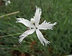 Die Blütezeit reicht von Mai bis Juni. Ihre Stängel tragen meist nur eine Blüte. Die zwittrigen Blüten sind radiärsymmetrisch und fünfzählig. Die äußeren Außenkelchblätter sind stumpf und kurz bespitzt. Die fünf Kronblätter sind weiß, nur selten blassrosafarben. Die Platte der Kronblätter ist 12 bis 18 Millimeter lang und bis zur Mitte zerschlitzt.