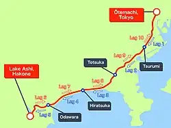 - ↑ a b c 第96回箱根駅伝 コース紹介と通過予想時間. In: yomiuri.co.jp. 30. Dezember 2019, archiviert vom (nicht mehr online verfügbar) am 31. Dezember 2020; abgerufen am 12. Dezember 2020 (japanisch). Info: Der Archivlink wurde automatisch eingesetzt und noch nicht geprüft. Bitte prüfe Original- und Archivlink gemäß Anleitung und entferne dann diesen Hinweis.