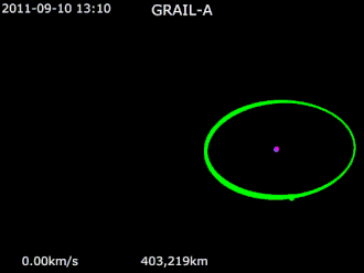 Hierbei handelte es sich zunächst um einen elliptischen Orbit mit einer Höhe von 100 km über der Mondoberfläche an seinem mondnächsten und 6000 km an seinem mondfernsten Punkt. Mit einem ersten Bahnkorrekturmanöver wurde der Orbit im weiteren Verlauf auf 100 × 2300 km geändert.[20] Beim zweiten Bahnmanöver, dem letzten vor der Landung, wurde das Haupttriebwerk am 13. April 2023 um 01:08 Uhr UTC für etwa 10 Minuten gezündet. Danach hatte Hakuto-R eine kreisförmige Umlaufbahn von 100 km Höhe.[21]