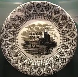 Generell reagierte der Deutsche Bund in den Jahren nach 1832 mit vermehrter Repression. Er ließ Personen des bürgerlichen Spektrums, die im Verdacht standen, mit revolutionären Ideen zu sympathisieren, verhaften, die Versammlungs- und Pressefreiheit einschränken und die Universitäten überwachen. Die reaktionären Maßnahmen, die eine drastische Verschärfung der Karlsbader Beschlüsse von 1819 bedeuteten, brachten die republikanische Bewegung somit vorerst zum Erliegen.[95] Am 5. Juli 1832 beschloss die Bundesversammlung zehn Artikel „zur Aufrechterhaltung der gesetzlichen Ruhe und Ordnung im Deutschen Bund“, die die sechs Artikel vom 28. Juni 1832 ergänzten und als Reaktion auf das Hambacher Fest gelten. Nicht zuletzt wegen des Festes, dem Wachensturm und der im Zusammenhang stehenden Franckh-Koseritz’schen Verschwörung schuf die Bundesregierung die Bundeszentralbehörde mit Sitz in Frankfurt am 30. Juni 1833.[Anm 19] Dieses Inquisitionsorgan ermittelte bis zur Auflösung im Jahr 1842 gegen mehr als 2.000 Verdächtigte und registrierte diese im „Schwarzen Buch“.[96] Viele zogen sich vom politischen Leben zurück, der sogenannte Biedermeier-Lebensstil verstärkte sich. Denunziationen und Spitzel trugen dazu maßgeblich bei.[97] Dennoch drückte das Bürgertum sein Streben nach einem geeinten Deutschland, nach Liberalität und Volksherrschaft aus, indem es entsprechende kunsthandwerkliche Gegenständen erwarb und verwendete. Sehr beliebt war unter anderem Geschirr mit der Abbildung des Hambacher Schlosses. Die Regierung konfiszierte diese Souvenirs, da diese Zeugnis revolutionärer Gesinnung sein sollten.[98]
