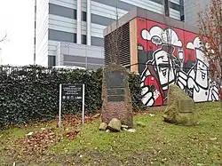 1993 Gedenktafel am Hauptbahnhof, in Erinnerung an die 8.000 Menschen, die von dem nahegelegenen, ehemaligen Hannoverschen Bahnhof in die Konzentrationslager deportiert wurden.[18]