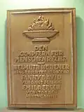 Die Gedenkplatte wurde 2009 als Marmortafel neu eingeweiht, da die ursprüngliche Bronzetafel gestohlen wurde.[19]