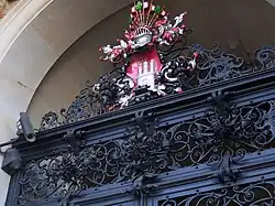 Über den Erdgeschoss-Außenfenstern sind die Wappen diverser hanseatischer Familien angebracht.