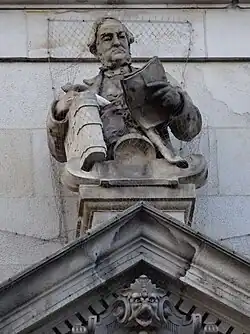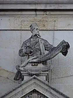 In diesen Figuren hat der Bildhauer Aloys Denoth bekannte Persönlichkeiten jener Zeit porträtiert. Heinz-Jürgen Brandt stellt in seinem Buch dar, dass diese Figurenreihe von den Zeitgenossen als willkommene Belebung der Fassade und als Darstellung des bürgerlichen Fleißes lebhaft begrüßt wurde.[11]