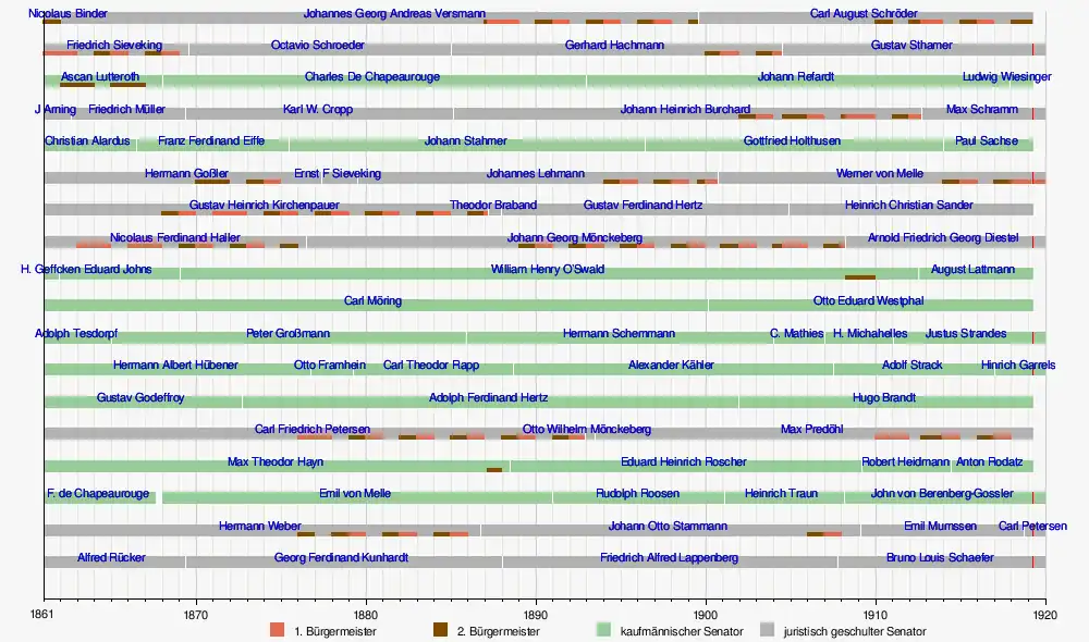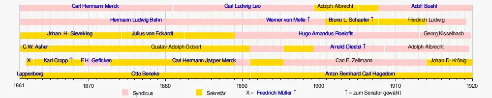 Bis 1860 war der offizielle Name der Hamburger Regierung Rat. 1859–1860 wurde die Hamburger Verfassung reformiert, und seit 1861 wurde die Regierung Senat genannt.