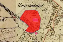 Ursprünglich geht das spätere Landsassengut Untermantel auf der Anfang des 15. Jahrhunderts zu einem Blechhammer umgebauten Letzenmühle zurück.[2] Im Salbuch von Kaiser Karl IV. wird unter den oberpfälzischen Besitzungen eine mül zu Leutschenpach genannt; diese erscheint 1415 als Letzenmühle unter dem parksteinischen Pflegers Heimeram Nothaft zu Wernberg im Besitz eines Frank. Bis in die Zwanzigerjahre des 16. Jahrhunderts heißen die Hammerherrn und zugleich Hammermeister Hans Frank, 1525 erscheinen Hans und Jörg die Plecher zu Mantel. Diese waren wie auch die anderen Hammerherrn verpflichtet, auf Abruf des Landrichters und Pflegers ein reißiges Pferd bereitzuhalten. Nach 1576 ist das Landsassengut an Albrecht Schröttel übergegangen. Im Steuerbuch von 1588/90 ist auf dem Hammer Mantel Albrecht Schrötzel eingetragen, allerdings mit den Bemerkungen jetzt Balthasar Haberstumpf und ist derzeit kein hammerwerk allda. Dann ist hier Thomas Walbrun und bald nach ihm Hans Walbrun genannt. 1591 hat Balthasar Haberstumpf den Huldigungseid in Neunburg abgeleistet. Vor 1607 wird das Landsassengut an Paul Schertl übereignet, ihm folgt Christoph Schertl (1636) nach. Während des Dreißigjährigen Krieges ist hier weiterhin die Familie Scherftl anzutreffen. In der Zeit waren keine Hintersassen mehr auf dem Gut, der Weiher war unbenutzt und die Felder lagen öd. Mitte des 17. Jahrhunderts wird hier der fürstliche Kanzleirat von Sulzbach Hans Christoph Schertl genannt. Noch 1661 berichtet seine Witwe Anna Elisabeth Schertl, dass der Besitz darnieder liege. 1661 sind wieder vier Hintersassen in die neuerbauten Häusl eingezogen; die Mühle am Latschenbach war wieder an einen Müller verpachtet, der aber bald wieder wegziehen wolle. Die Witwe heiratete den Wolfgang Balthasar Moller; dieser kam schrittweise in den Besitz, der nun Unterhammer genannt wurde. Nach dem Tod der Anna Elisabeth heiratete der Moller Eva Sophie Hundt. Diese verkaufte nach dem Tod ihres Gatten († 1676) das Gut an Rudolf Heinrich von Schönstett. Dieser veräußerte das Gut am 1. Mai 1717 an seinen Schwiegersohn Franz Joseph Freiherr von Horneck zu Hornberg. Ihm folgte Konrad Forster, Wirtssohn aus Mantel; von diesem ging das Gut an seinen nobilitierten Sohn Franz Friedrich von Forster und dann an Maria Ludwig Reichsgraf von Pestalozza. Zur Wende zum 19. Jahrhundert kaufte Wilhelmine Freifrau von Vittinghof, geborene von Schirnding, das Landsassengut; sie wurde 1801 damit immatrikuliert. Die gutsherrlichen Rechte wurden 1815 eingezogen und waren somit erloschen.