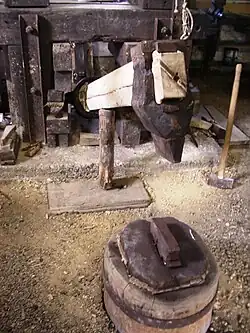 Das Wasserrad treibt über eine Nockenwelle drei Schmiedehämmer an. Die in der grossen Esse vorbereiteten Objekte werden unter den Hämmern in die gewünschte Form gebracht und anschliessend je nach Bedarf zu den fertigen Geräten bearbeitet. Im 20. Jahrhundert waren drei Hämmer vorhanden: Zwei grosse Hämmer, deren Köpfe ein Gewicht von 80 kg und 45 kg hatten, dienten der groben Bearbeitung der Werkstücke, und mit dem kleineren Schwanzhammer erfolgte die Feinarbeit oder die Formung kleiner Produkte. Heute ist noch ein Hammer mit dem Gewicht von 58 kg in der Werkstätte. Mit einem zweiten Wasserrad, das im frühen 20. Jahrhundert dazukam, laufen der Blasebalg an der Esse sowie mehrere Maschinen wie eine Drehbank und ein grosser Schleifstein. Neben dem Hammerwerk stand im 20. Jahrhundert ein Lagerhaus für die Kohle, die in der Esse verbraucht wurde.