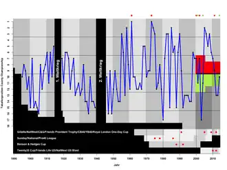 | One Day Cup-Siege | FP Trophy: 3 National League: 3 B&H Cup: 2 ECB 40: 1 RL Cup: 0 |