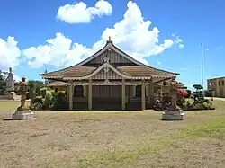 Der buddhistische Tempel befindet sich auf der westlichen Seite des Hanapepe Rivers. Er wurde 1978 von japanischen Plantagenarbeitern der Umgebung, darunter viele Handwerker, entworfen und gebaut. Er wurde im traditionellen Stil designt, es wurden aber auch moderne Baumaterialien und Techniken benutzt. Die vier Eckpfeiler, die das Vordach tragen, sind aus Beton, die Querbalken jedoch traditionell aus geschnitztem Holz mit stilisierten Elefantenköpfen. Die Pfeiler im Innenraum sind mit Gold und schwarzem Brokat mit Drachenmustern bedeckt. Links neben dem Tempel befinden sich eine sechs Meter hohe Granitstatue der Göttin Kannon und weitere Statuen. Im Vordergrund stehen rechts und links zwei steinerne Laternen aus Japan. Der Bodhibaum hinter dem Tempel stammt aus Bodhgaya, wo Buddha dem Glauben nach seine Erleuchtung erhielt.[9][10]