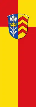 „Die Flagge zeigt die beiden Farben Gelb und Rot, im oberen Viertel verwechselt und im Schnittpunkt belegt mit dem Wappen der Gemeinde.“[22]
