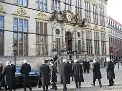 - ↑ Vergleiche: Die Bremer Schaffermahlzeit (Tradition seit 1545). Der Senator für Inneres und Sport der Freien Hansestadt Bremen (www.inneres.bremen.de), abgerufen am 30. Januar 2011.
