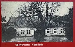 - ↑ Informationstafel der Gemeinde Grünheide (Mark): Historische Oberförsterei Hangelsberg – gestern und heute, aufgestellt an der Försterei, März 2022.