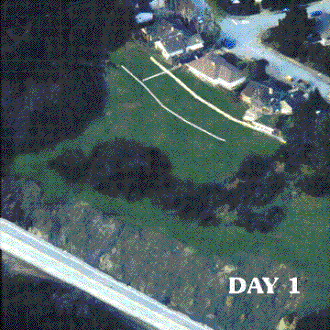 - großflächiges Abdecken kritischer Hangbereiche durch Planen, um weiteres Eindringen von Regenwasser zu verhindern.