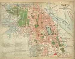 1873 wurde Hanoi von den Franzosen erobert. Von 1883 bis 1945 war die Stadt Verwaltungszentrum der Kolonie Französisch-Indochina. Die Franzosen errichteten südlich von Alt-Hanoi eine moderne Verwaltungsstadt, legten breite, rechtwinklig zueinander liegende, baumgesäumte Alleen mit Oper, Kirchen, öffentlichen Bauten und Luxusvillen an, zerstörten aber auch große Teile der Stadt, schütteten Seen und Kanäle zu oder verkleinerten diese; Kaiserpaläste und Zitadelle mussten ebenfalls weichen.