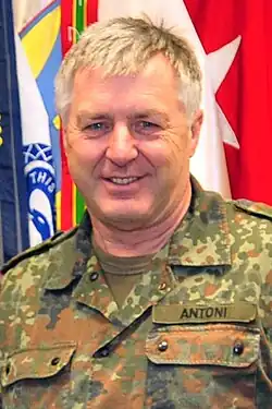 Unter Ernennung zum Generalmajor wurde Antoni am 1. Oktober 2008 nach Afghanistan versetzt,[2] wo er im Rahmen der ISAF in Kabul als stellvertretender Chef des Stabes für Logistik unter den US-Generälen David D. McKiernan und Stanley A. McChrystal diente. Nach 14 Monaten kehrte er zurück nach Deutschland und wurde zur Vorbereitung auf seine neue Verwendung an die Führungsakademie versetzt. Im Oktober 2010 übernahm Antoni innerhalb der NATO-Kommandostruktur als erster Deutscher den Posten des Director Resources beim Joint Force Command Headquarters, Brunssum in den Niederlanden. Vom 1. Januar 2013 bis 14. Januar 2016 war er der erste Kommandeur des Logistikkommando der Bundeswehr in Erfurt[3]. Generalmajor Antoni wurde mit Ablauf des 31. Januar 2016 in den Ruhestand versetzt.