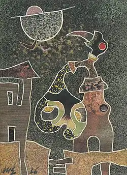 Der Surrealismus der 1930er und der Nachkriegsjahre prägten das Schaffen von Hans-Ulrich Ernst. Die Vorbilder waren der junge Joan Miró, Salvador Dalí und sein Namenskollege Max Ernst.[11] Als Autodidakt schuf Hans-Ulrich Ernst in den 1950er Jahren erste Bilder, zunächst noch gegenständlicher Natur. Dazu zählt das Selbstporträt, das 1954 entstand. Später löste er sich vom eigentlichen Abbild, in der Überzeugung, das Nachahmen äusserer Erscheinungen habe nichts mit Kunst zu tun, diese sei vielmehr Dokumentation der eigenen individuellen Geisteshaltung.[12][13]