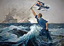 Von Hans Bohrdt stammt „das wohl berühmteste deutsche Marinebild“ Der letzte Mann: „Ein Signalgast soll sich, mit der Kriegsflagge in der Hand, auf den Kiel der gekenterten SMS Leipzig gestellt haben und dann mit ihr untergegangen sein. Die Pose des Matrosen erinnert sehr an eine Ikone der Malerei des 19. Jahrhunderts, an Eugène Delacroix Die Freiheit führt das Volk von 1830.“[2][3]