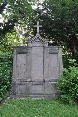 Er ist im denkmalgeschützten Familiengrab in Hornau neben seiner Ehefrau begraben.