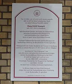 Gedenktafel für Hans Erich Nossack in Hamburg Ecke Isestraße/Grindelberg