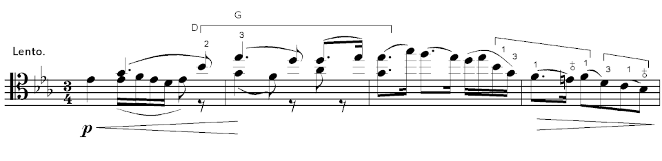 Thema der Sarabande aus der Suite im alten Stil: Dieser langsamste Abschnitt des sechssätzigen Werks gilt aufgrund seiner polyphonen Stimmführung als besonders schwierig auszuführen.