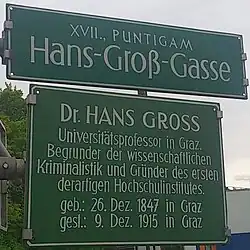 Am 17. Februar 1913 wurde das Kriminalistische Institut zur Pflege der Hilfswissenschaften an der rechts- und staatswissenschaftlichen Fakultät der Universität Graz eröffnet und Hans Gross zum Leiter des Instituts bestellt.
