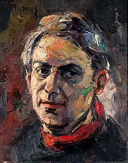 - 1956 malte er ein Selbstbildnis mit Öl auf Leinwand, H 60 x B 50 cm, signiert, datiert und mit einer Widmung für einen Bekannten zur Erinnerung.[29]