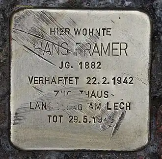- ↑ Stolpersteine Hallein: Pramer, Hans, abgerufen am 7. April 2016.