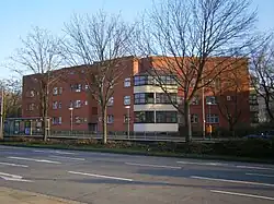 Das ehemalige Kinderkrankenhaus steht auf dem Gelände Hansastraße 178–180. Den Entwurf und die Bauplanung für das erste kommunal geführte Säuglings- und Kinderkrankenhaus Preußens hatte der Gemeindebaurat Carl James Bühring übernommen. Es wurde am 8. Juli 1911 mit einem Festakt eingeweiht.[53] Zu Therapiezwecken war die Klinik in einen gestalteten Park eingebunden und verfügte über einen mit dem Hauptgebäude verbundenen Hörsaal für werdende Mediziner. Ein Novum für die damalige Zeit war die in unmittelbarer Nachbarschaft zum Krankenhaus gelegene Milchkuranstalt. Sie umfasste einen Muster-Kuhstall und eine Nahrungsbereitungsanstalt zur Gewährleistung einer direkten Versorgung der Neugeborenen und deren Mütter mit Milch. Die überschüssige Milch wurde an die Bevölkerung verkauft.[54]