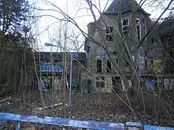 Das Kinderkrankenhaus auf dem 28.000 m² großen Grundstück überdauerte die Zeiten. Im Jahr 1987 wurde es durch den Anbau eines Bettenhauses erweitert. Weitere zehn Jahre später erfolgte auf Beschluss des Senats 1996 die Schließung der traditionsreichen Einrichtung. Es verblieb lediglich als denkmalgeschützte Immobilie.[59] Seit dem 1. Januar 1997 ist das ehemalige Säuglingskrankenhauses der Gemeinde Weißensee mit allen Wirtschaftsgebäuden ungenutzt und dem Verfall preisgegeben. – Das Gebäude wurde 2005 nach mehreren Versuchen (eine Firma wollte mit Radiowellen AIDS heilen)[60] an einen russischen Investor verkauft. Spätestens 2015 sollte auf dem Areal ein wissenschaftliches Zentrum für die Krebsforschung in Betrieb gehen, geplant waren ein Therapiezentrum, ein ambulanter Klinikbetrieb sowie ein Tagungszentrum. Für den Denkmalschutz und Erhalt der Bausubstanz waren im Konzept der Firma MWZ Bio Resonanz GmbH (ein Konsortium russischer Ärzte) zehn Millionen Euro vorgesehen.[61] Das Haupthaus brannte bis Mitte Juni 2013 bereits elfmal, sodass die Feuerwehr von Brandstiftung ausgeht. Statt Investitionen brachte das Konsortium geänderte Vorschläge ohne eigene Aktivitäten.[62]