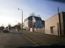 - Hansastraße 1–5 (ungerade) ist ein Gewerbegrundstück mit einem Schnellrestaurant und einer Autowerkstatt.