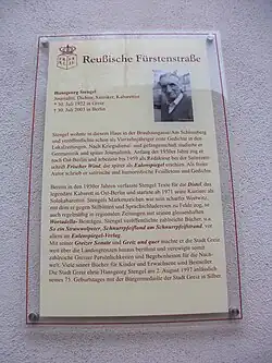 - ↑ OTZ: Gedenktafel erinnert an Hansgeorg Stengel. 18. Mai 2018, abgerufen am 17. Juli 2022 (deutsch).