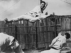 Ein weiterer Schüler Choi Yong-suls in Daegu war Kim Moo-hong (Hangeul: 김무홍, Revidierte Romanisierung: Kim Mu-hong. Sein Name wird mit vielen anderen unregelmäßigen Schreibungen romanisiert: Kim Moo-hyun, Kim Mu-hyun, Kim Mu-wung, Kim Moo-woong, Kim Moo-moong.[1]) Kim Moo-hong war ein Spezialist für Fußtechniken, die er in einem Seouler Tempel perfektioniert haben soll.[6] Der Name des Tempels, seine dortigen Lehrer und die Kampfkunst, aus der diese Tritte stammen sollen, sind unbekannt. Da in den traditionellen japanischen Kampfkünsten meist weniger Fußtechniken benutzt werden als in den traditionellen koreanischen, etwa dem Taekkyon,[7] lehrte Choi Yong-sul vergleichsweise wenige Fußtechniken.