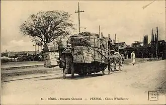 In einem Vortrag von 1908 wurde vom traditionellen Einsatz hölzerner Schubkarren mit zentralem Rad für den Transport von 240 bis 300 kg schweren Lasten in China berichtet. Der Vortragende ging davon aus, dass diese Art von Fahrzeug in Ländern wie China, in denen die Straßen sehr schlecht sind, sehr nützlich und praktisch sei. Wo die Pfade und Wege nicht immer gut gepflegt werden, und oft nur eine Spur haben, sei der Einsatz vorteilhaft. Die chinesischen Schubkarren waren ziemlich grobschlächtig und sahen sehr schwer aus.
