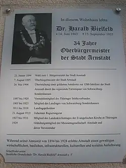 - Paul Hoffmann: Oberbürgermeister i. R. Geheimer Regierungsrat Dr. phil. Harald Bielfeld †. In: Alt-Arnstadt. Beiträge zur Heimatkunde von Arnstadt und Umgebung. 10. Heft, 1934, S. 2–8. (mit überdeckten Textstellen)