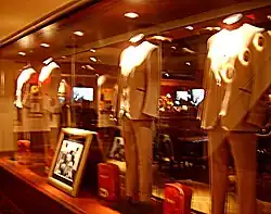 Ausgestellte Original-Anzüge der Beatles im Hard Rock Cafe in New York City