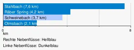 | Linke Nebenflüsse | Räber Spring, Olmsbach, Tannrähmsbach, Verbindungsgraben, Stahlbach | |